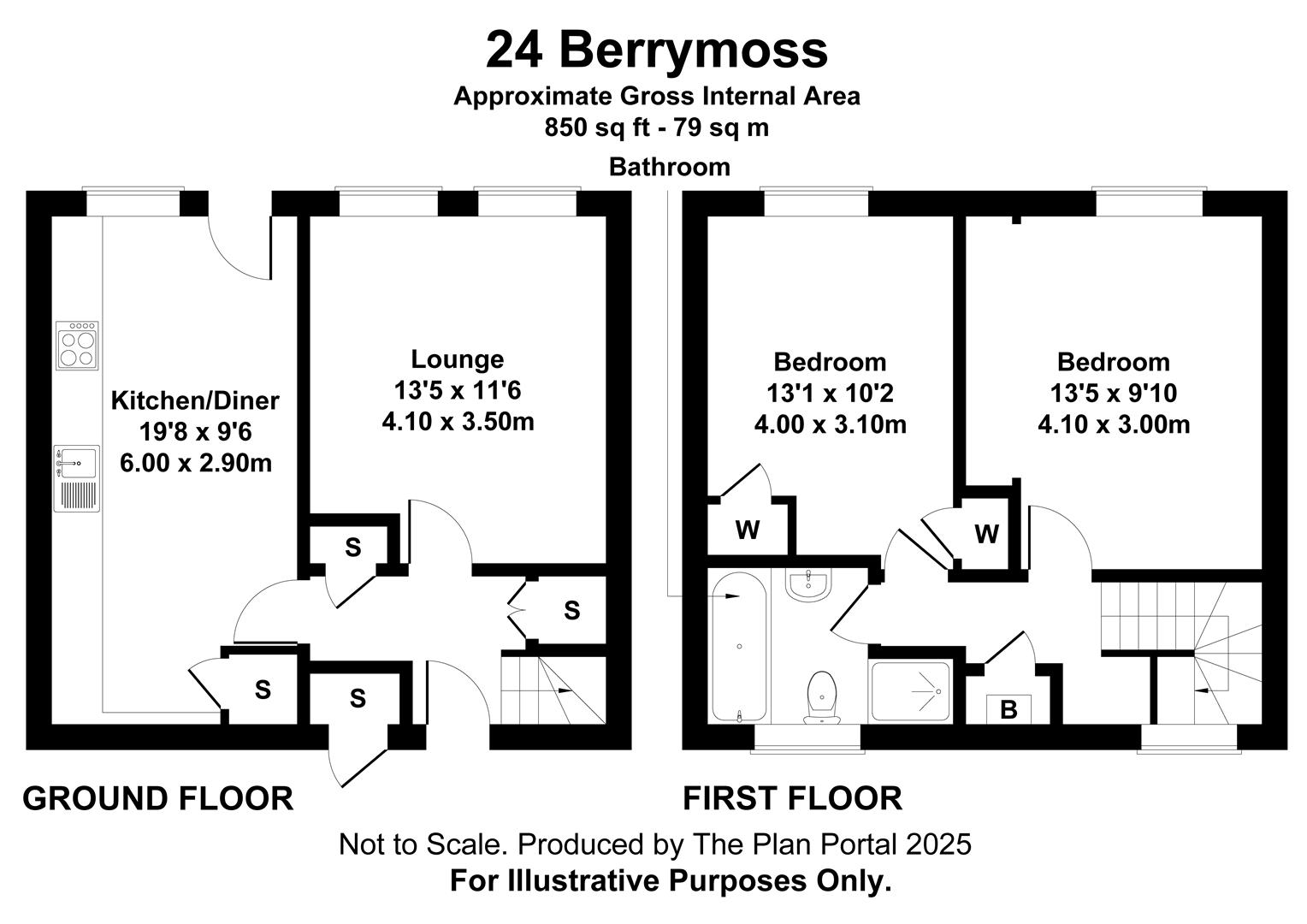 Upstairs, the home features two well-proportioned bedrooms, each offering versatility for use as a guest room, nursery, or home office. The modern family bathroom includes both bath and shower facilities. Stylish, practical, and move-in ready, 24 Berrymoss is an ideal choice for buyers seeking a comfortable home in a well-connected and welcoming neighbourhood.