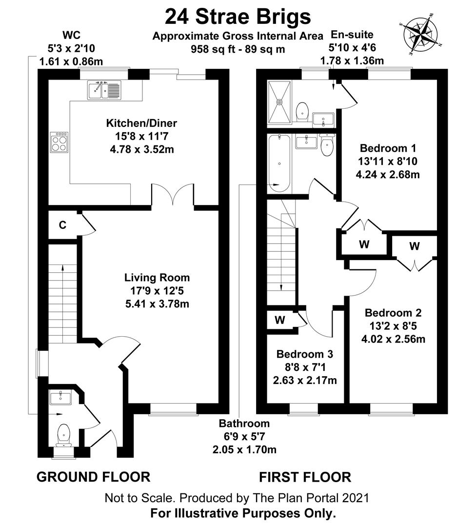 Entrance Hall, Living Room with Walk-in Storage, Dining Kitchen, Cloakroom W/C. First Floor Master with Ensuite Shower Room, Two Further Bedrooms, Family Bathroom. Private Fully Enclosed Garden.