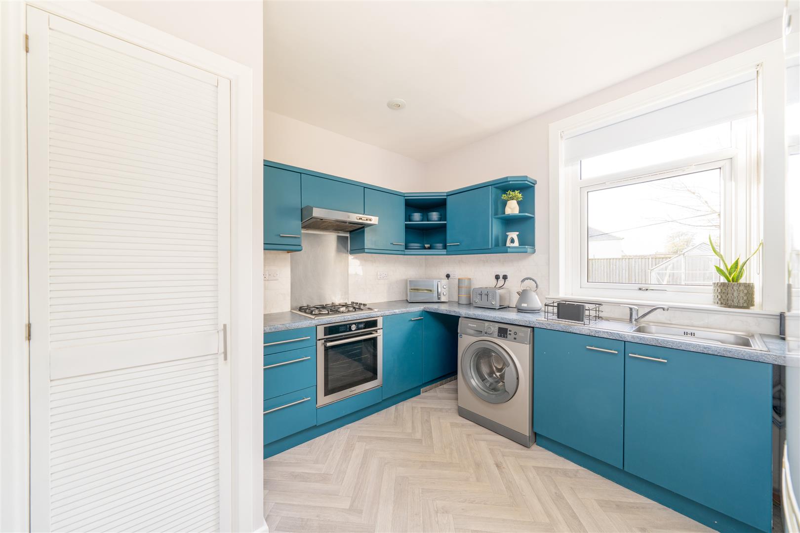 With an open aspect over the cul se sac to the front, the lounge is a great size with large windows affording plenty of natural light. A rear hall extends to the well-appointed kitchen which overlooks the garden, and the contemporary bathroom complete with wet wall panelling and a shower over the bath. Usefully there is also a large storage cupboard and rear door giving easy access to the gardens and private parking beyond.