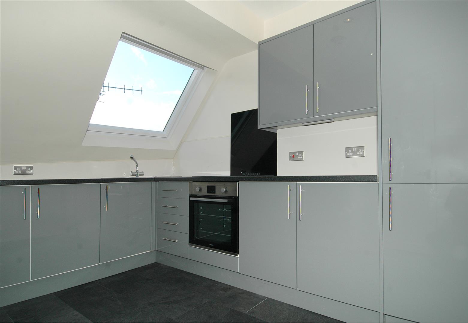 The lounge is situated to the front of the property with part combed ceilings and a dormer window enjoying outlooks over the town centre. The newly fitted open plan kitchen to the rear of the lounge enjoys lots of natural light with a large skylight window giving partial views towards Floors Castle in the distance. Two double bedrooms are situated to the rear of the property . The bathroom is fitted with a white suite consisting of WC, washhand basin and bath with electric shower over. New wet wall paneling and shower screen have been fitted.