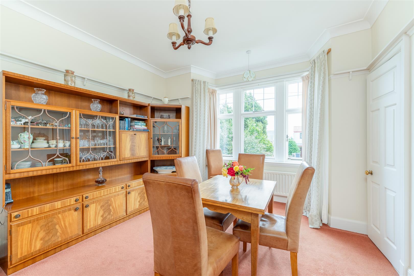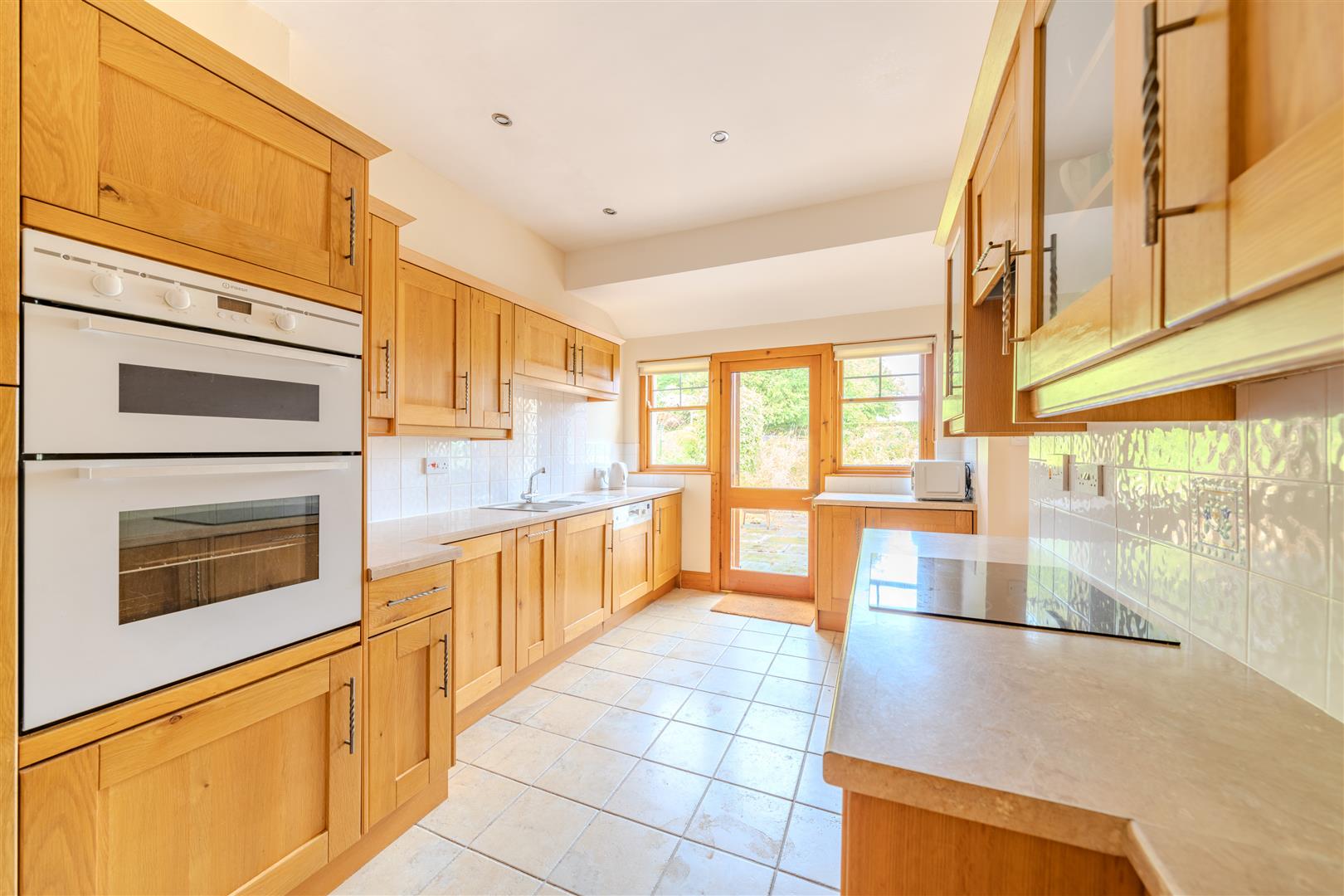 The ground floor living spaces are both impressive and inviting. At the heart of the home lies an elegant drawing room of considerable scale, featuring two bay windows framing views across the private front garden, and centred around a classic open log fire — the epitome of refined country living. This is complemented by a striking garden room extension with vaulted ceiling and direct access to the grounds, creating a seamless connection between indoors and out. A formal dining room and a bright, front-facing conservatory further enhance the home’s entertaining credentials.