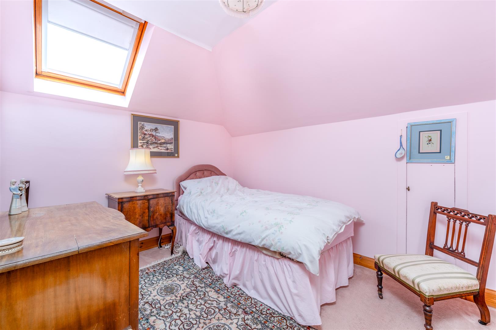 The upper floor hosts two further bedrooms, one of which boasts windows on two sides capturing views towards the church yard as well as the private grounds to the rear, with open outlooks beyond. An additional bathroom on this level serves both bedrooms well.