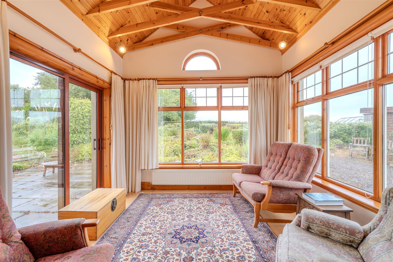 The surrounding gardens are a true delight, having been thoughtfully landscaped and nurtured over many years to create a peaceful, private haven. Highlights include a charming water feature set within a terraced rockery at the rear, immaculate lawns, and vibrant, well-stocked borders that offer year-round colour. The garden enjoys complete privacy and extends to include a small paddock with a woodland section, adding a touch of natural beauty and seclusion.