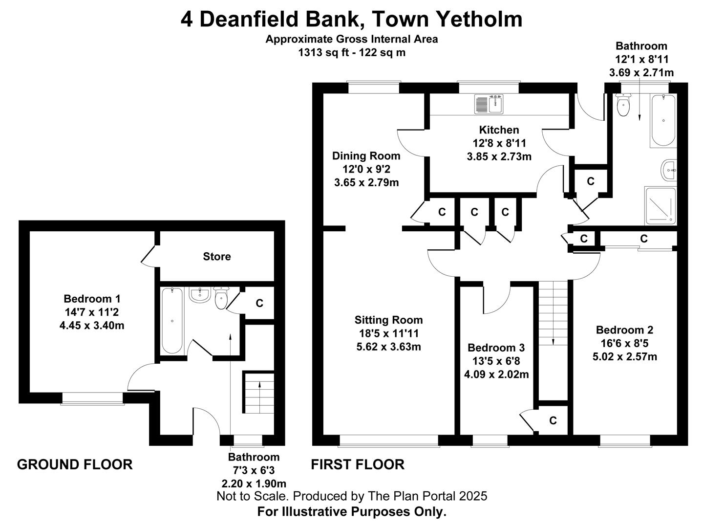 GROUND FLOOR: Entrance hall, Bedroom, Bathroom. FIRST FLOOR: Sitting room, dining room, kitchen, utility room, bathroom, two further bedrooms.