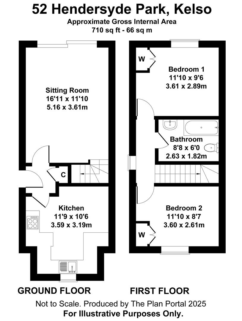 52 Hendersyde Park is a lovely semi-detached home set within one of Kelso’s most sought-after residential areas, offering well-proportioned accommodation ideal for first-time buyers or those looking to downsize. On the ground floor the property features a bright lounge with sliding patio doors and views over the rear garden as well as a modern fitted kitchen with space for dining. Upstairs, there are two generous double bedrooms along with a well-presented family bathroom, and the home offers ample built-in storage throughout, ensuring a practical and comfortable layout.