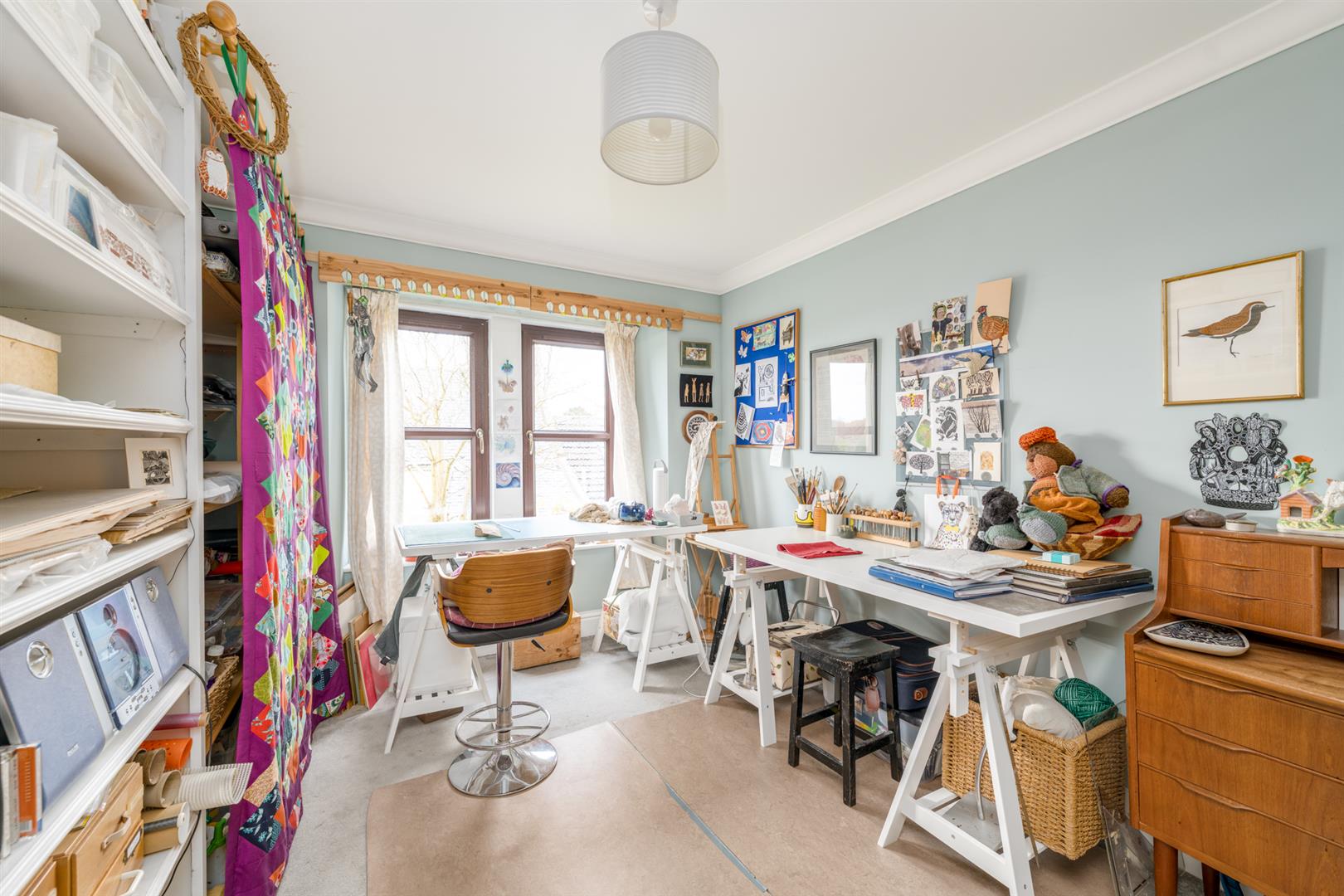 The top floor includes two further large attic rooms, ideal as additional bedrooms, home offices, or peaceful creative spaces, served by a modern shower room.