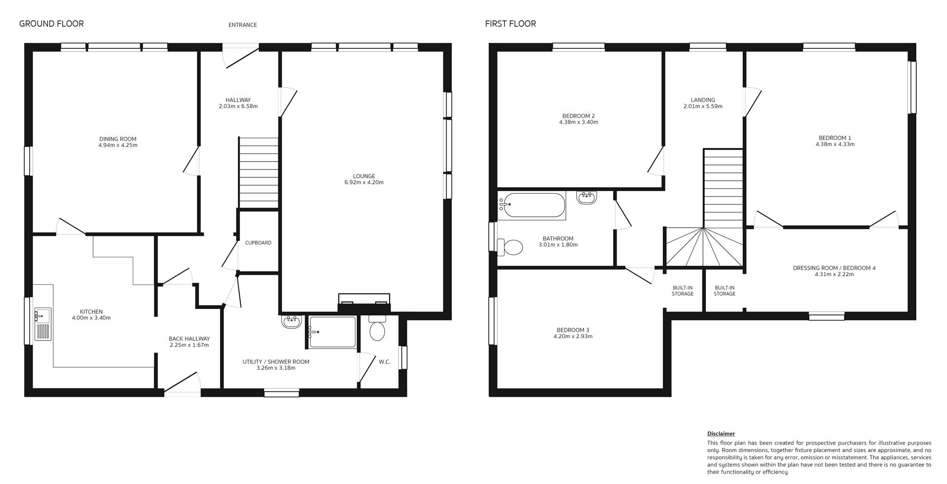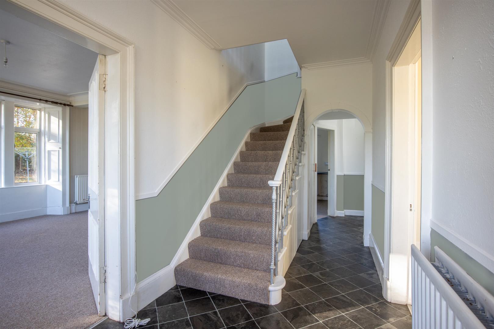 A canopied entrance to front with 2 large public rooms off the front hallway and stairs to the upper floor. Traditional features include deep skirtings and cast iron astragalled bannister with connecting rear hall, under stair cupboards utility with downstairs shower room and WC and back door to parking. The front lounge is dual aspect with stunning views and working shutters, an open fire with stone hearth and arched display recesses and bookcases to the sides. The dining room also has windows to front and side giving views to the Minto hills and beyond. A door leads through to the kitchen which features a modern range of wall and base units. Space and plumbed for a dishwasher and oven with a large American Fridge Freezer locate in a recess in the adjoining rear hall with the utility room with shower and wc beyond.
