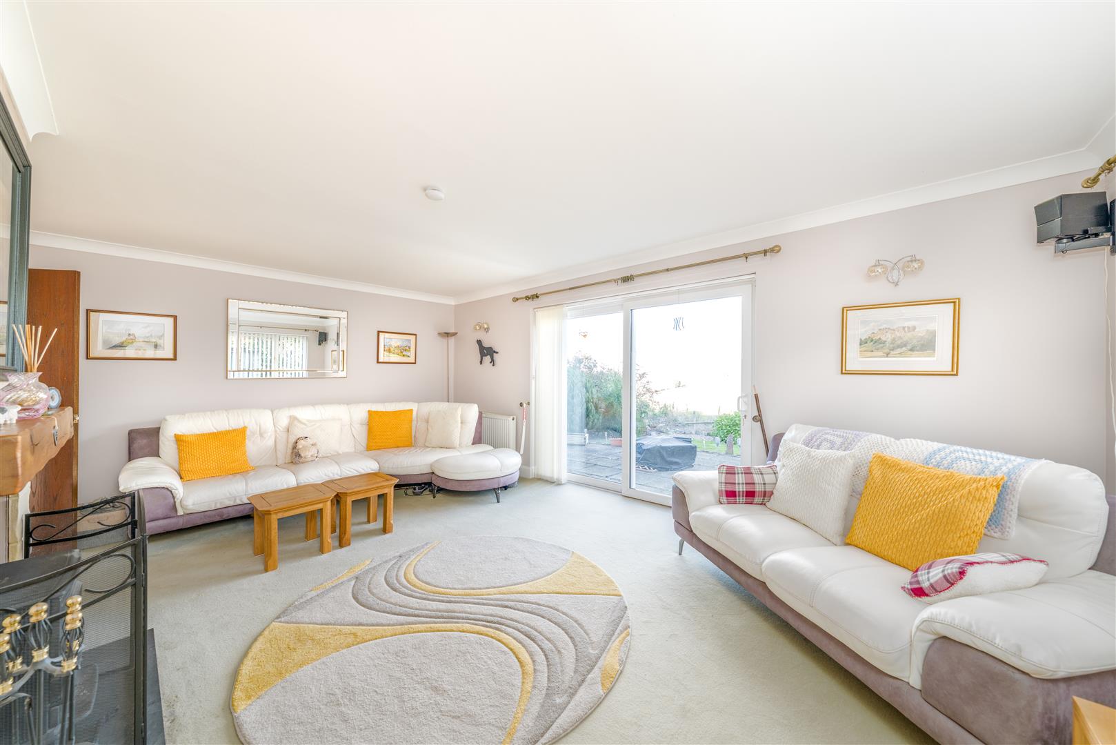 The ground floor provides exceptional reception space with a generous lounge with panoramic outlooks over the garden and view beyond, with a second reception room currently used as a dining room adjoining a modern fitted kitchen. To the far end, a double bedroom is serviced by the neighbouring cloakroom. Upstairs, two further double bedroom enjoy wonderful elevated outlooks, with a bright shower room across the landing.