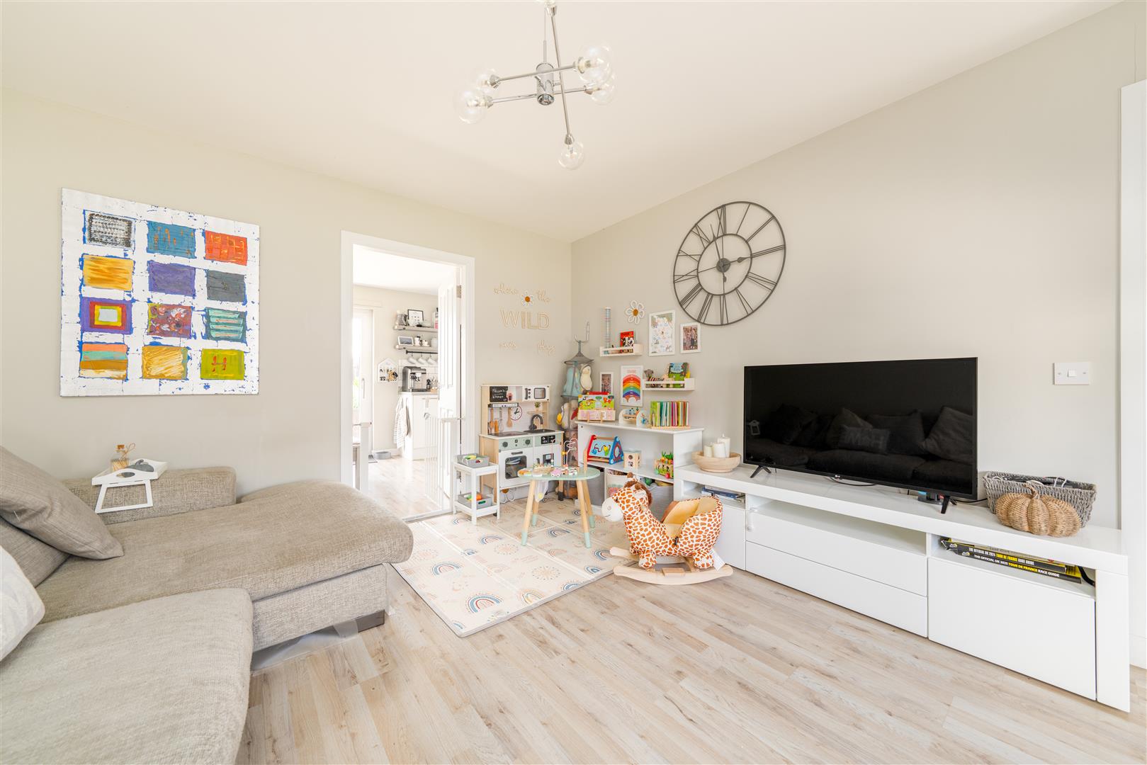 a welcoming and relaxing space for family life. The modern kitchen