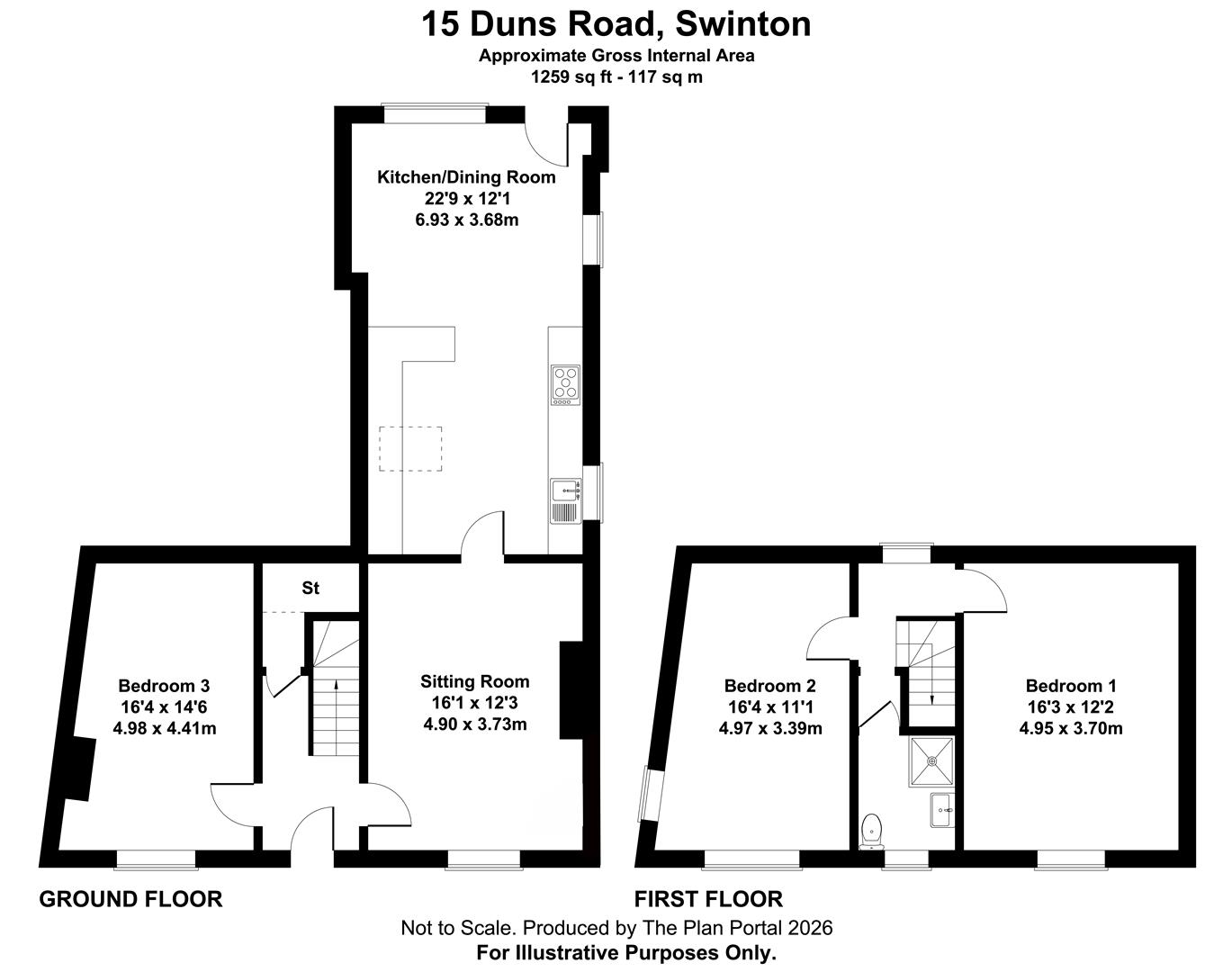 Entrance Hall, Lounge, Family Dining Kitchen, Bedroom Three/Sitting Room, Two Further Double Bedrooms and Shower Room.
